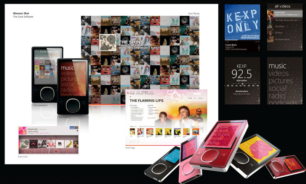 I collaborated with the design and product teams to create screens and designs for the version 2 of the Zune music player.